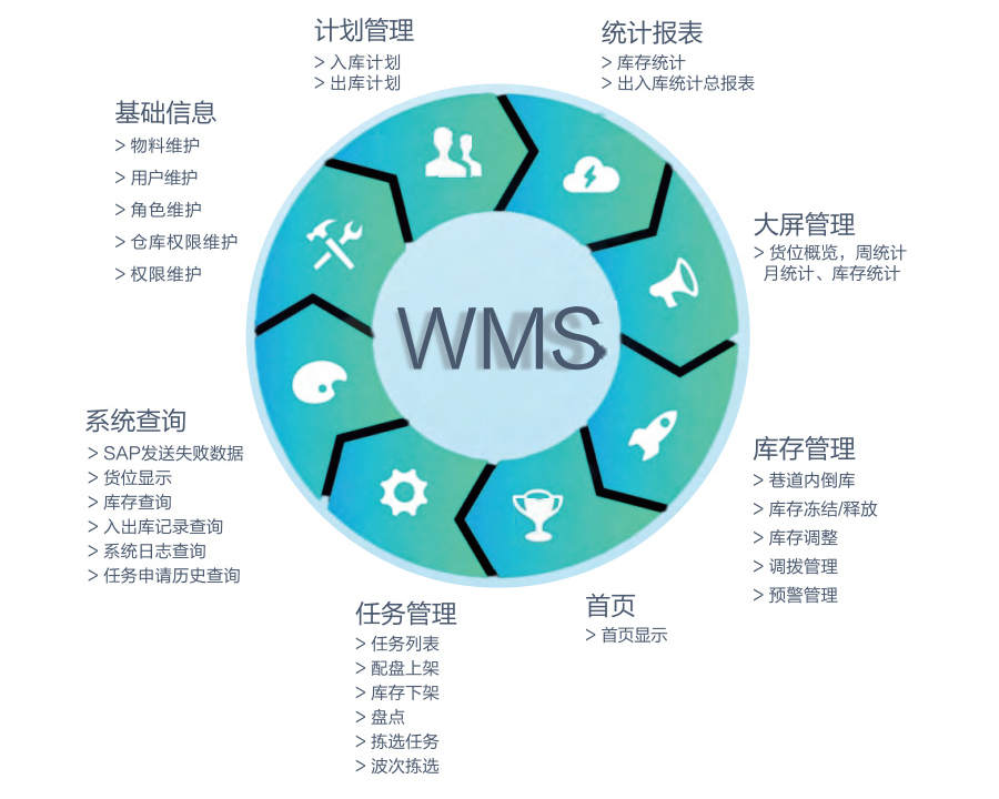 大屏管理:包括显示货位概览、设备故障统计、库存统计、出入库任务周统计、出入库任务月统计等功能。